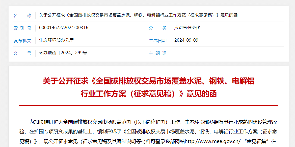 為加快推進(jìn)擴(kuò)大全國(guó)碳排放權(quán)交易市場(chǎng)覆蓋范圍(以下簡(jiǎn)稱擴(kuò)圍)工作,生態(tài)環(huán)境部參照發(fā)電行業(yè)成熟的建設(shè)管理經(jīng)驗(yàn),在擴(kuò)圍專項(xiàng)研究成果的基礎(chǔ)上,編制形成了《全國(guó)碳排放權(quán)交易市場(chǎng)覆蓋水泥、鋼鐵、電解鋁行業(yè)工作方案》